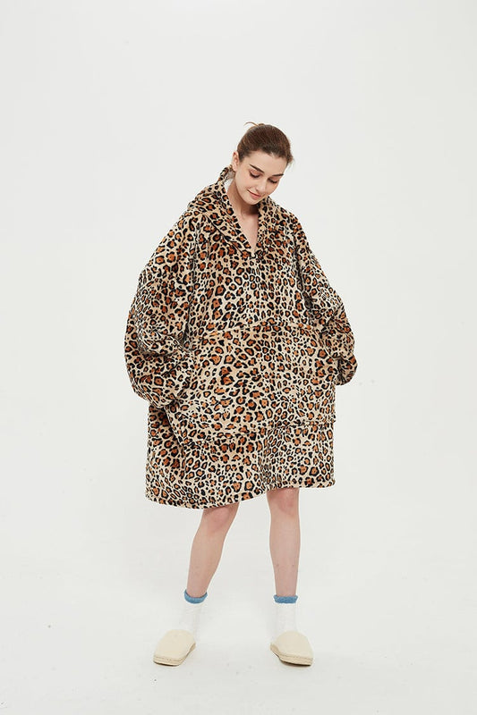 Snuggly™ Oversized Leopard Print Blanket Hoodie