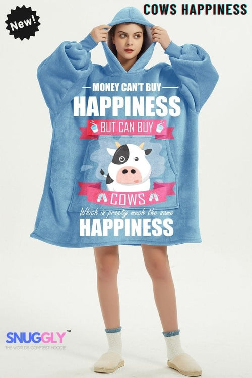 Cows Happiness Oversized Hoodie Blanket - Cozy Wearable blanket hoodie for those who love cows