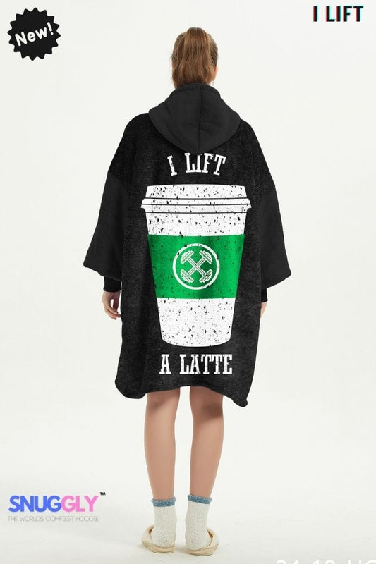 Snuggly™ "I Lift a Latte" Oversized Blanket Hoodie | Cozy Hooded Blanket for Gym folks who love Coffee