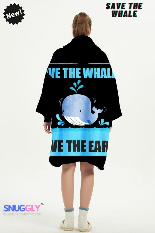 Snuggly™ Save the Whales Oversized Hoodie Blanket - Marine Hooded Wearable Blanket