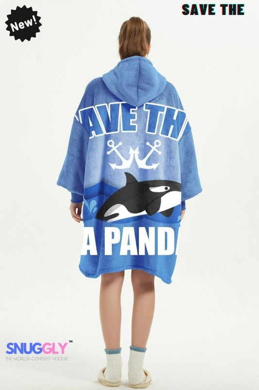 Snuggly™ Save the Sea Pandas Oversized Hoodie Blanket - Orca Hooded Wearable Blanket