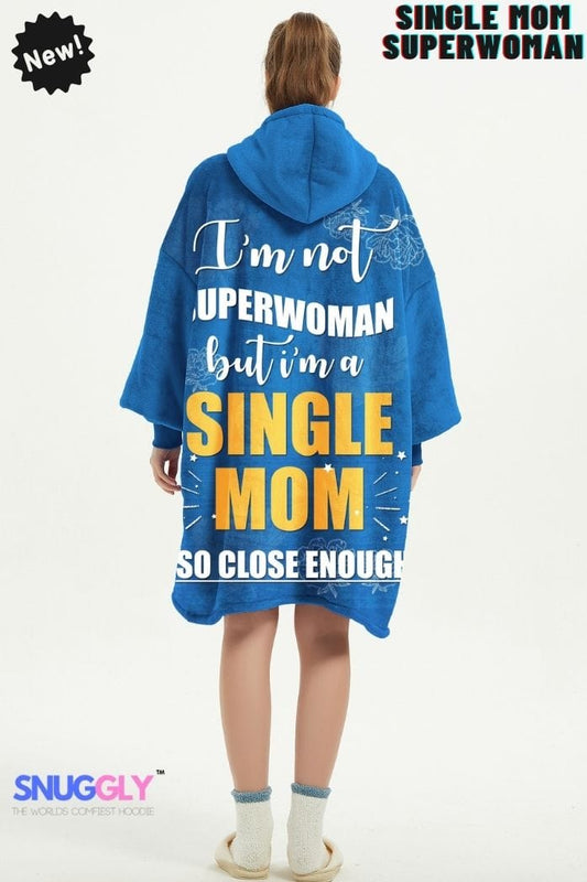 Snuggly™ Single Mom Superwoman Oversized Blanket Hoodie | Cozy Hooded Blanket for Amazing Moms