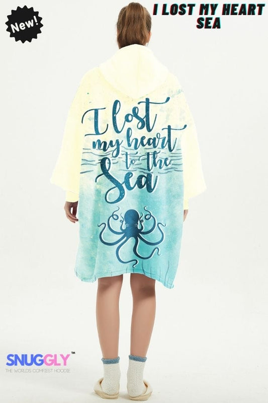 Snuggly™ "Lost My Heart to the Sea" Oversized Blanket Hoodie | Cozy Hooded Blanket for Beach Lovers