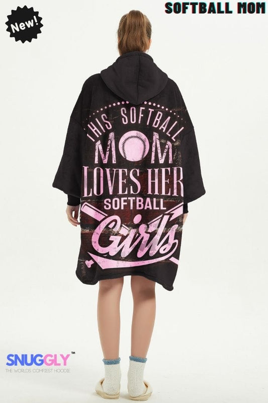 Snuggly™ This Softball Mom Loves Her Girls | Cozy Blanket Hoodie