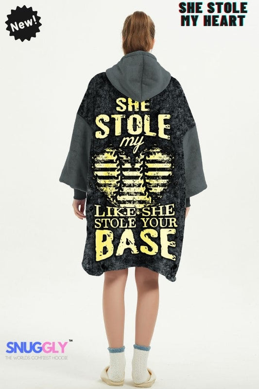 Snuggly™ She Stole My Heart Like She Stole Your Base | Cozy Blanket Hoodie