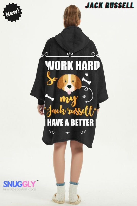 Snuggly™ "I Work Hard" Jack Russell Oversized Blanket Hoodie