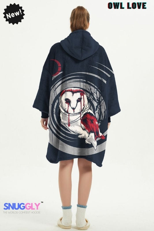 Snuggly™ "Owl Love" Gothic Oversized Blanket Hoodie for Night Owls and Art Enthusiasts